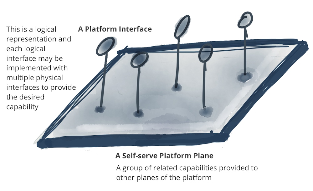自助式平台的能力分为多个类别或平面,如模型中所称。注意:平面代表了一种存在层次——集成但独立。类似于物理和意识平面,或网络中的控制和数据平面。平面既不是层,也不意味着强烈的层次访问模型。
