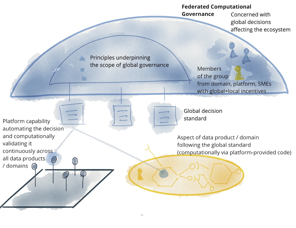 图12:联合计算治理的元素示例:团队、激励、自动化实施和数据网格的全球标准化方面
