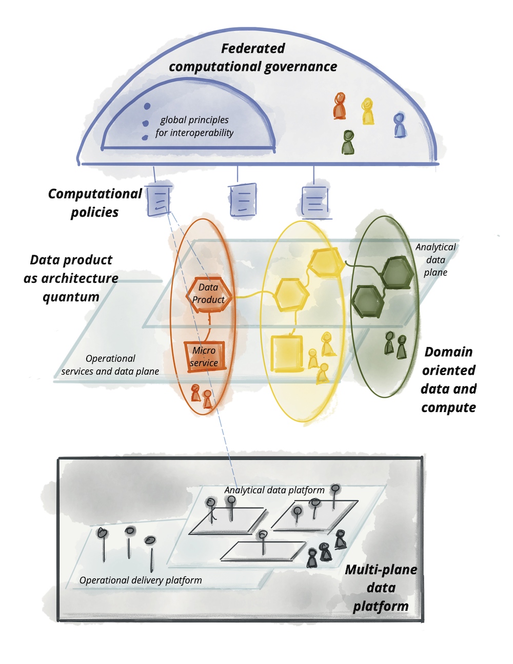 我期望这四个原则是集体必要且充分的;在实现规模和弹性的同时,解决关于数据孤岛化或运营成本增加的担忧。让我们深入探讨每个原则,然后设计支持它的概念架构。