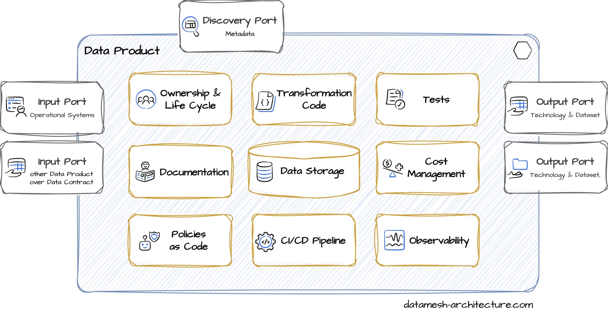 - 数据产品是最小的独立部署单元,具有高功能内聚性,并包括所有必要的结构元素,如代码、数据和元数据、基础设施等。这种设计使得数据产品可以独立于其他领域进行开发和维护。